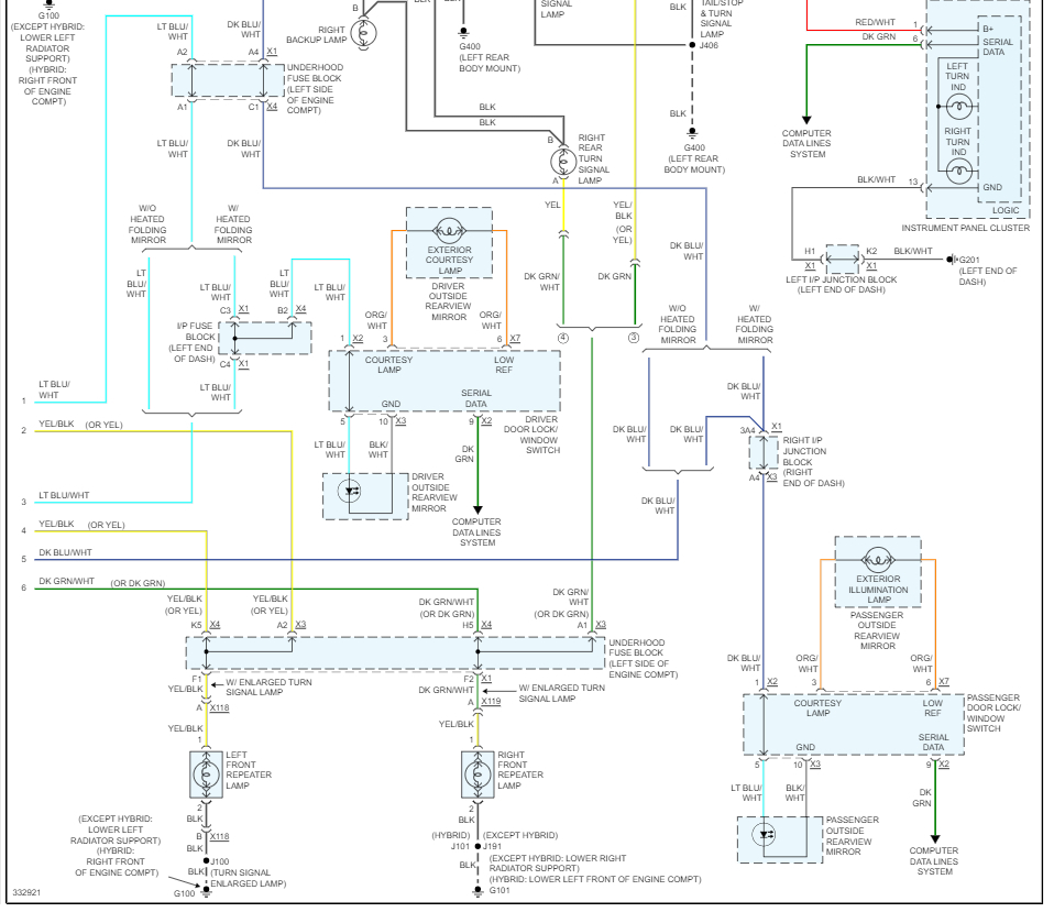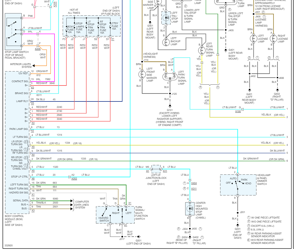 The 2nd is the Brake Lamp Switch operation (Stop Lamp). It has a 12v Reference going Out to the switch from the BCM which is a contact wire, showing when the switch is Not depressed. So, the Contact Sig wire should show 12v.