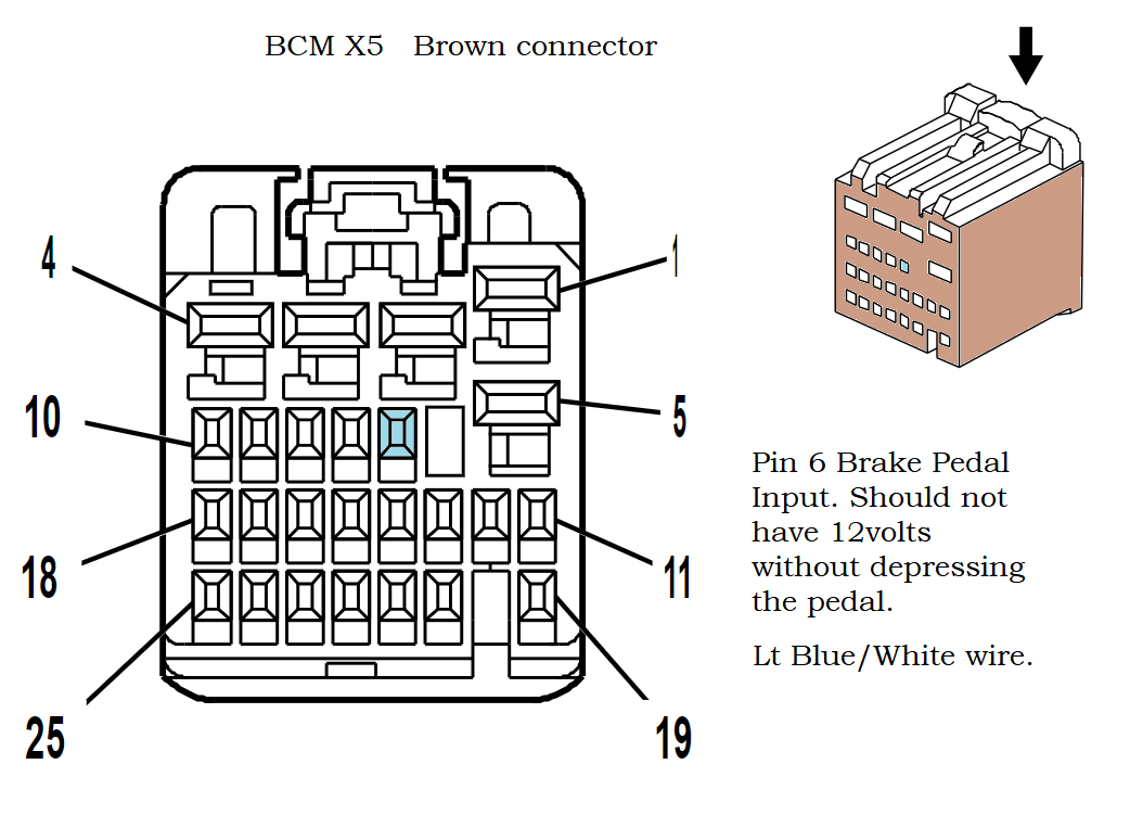 The 3, 4 diagram shows the Brown X5 pin 6 BCM connector which is the input wire from the Brake Lamp switch, so there should not be 12volts on there unless you press the pedal. So, verify that there isn't a short to power on this wire, If the BCM is receiving voltage from another source it could trigger the Stop Lamp output circuit.