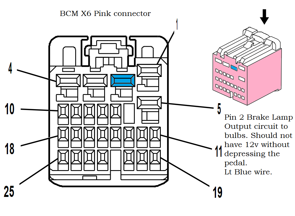 The 5, 6 diagrams are for the Brake Lamp output wire from the pink BCM connector X6 pin 2. It should not have 12v unless pressing the pedal, this is where you will find you probably have voltage coming out when it shouldn't. Now if you turn the key off, and you unplug this connector and still have voltage on this wire, then it is feeding back from some other source. Such as a short to another power wire. I don't think you'll find that since pulling the Stop Lamp fuse shuts down the circuit. But it's good to check before replacing any modules.
