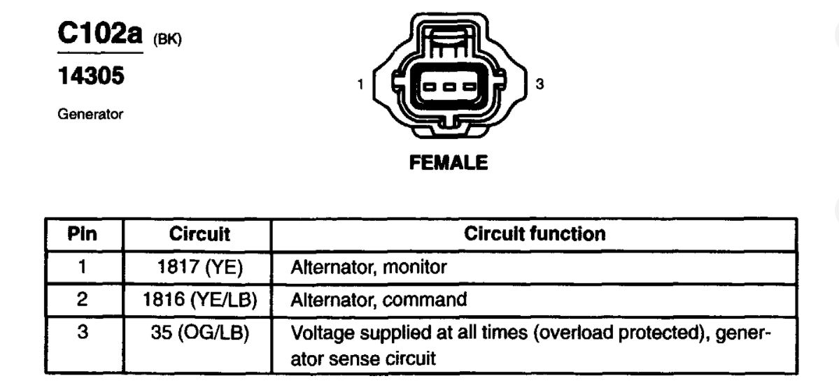 I attached the wiring diagram of the charging system for you as well as the connector diagram with the location of the wires for you.