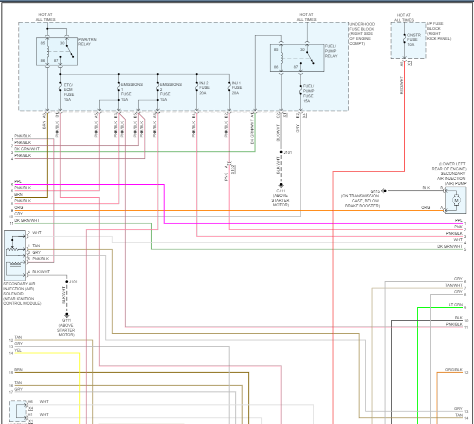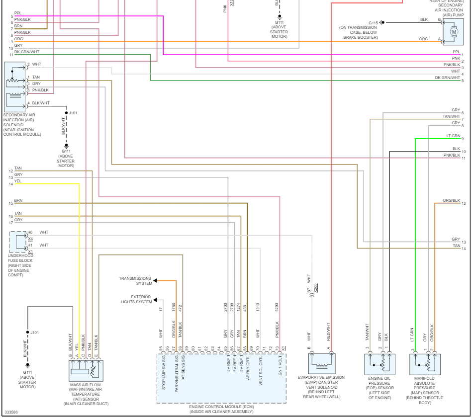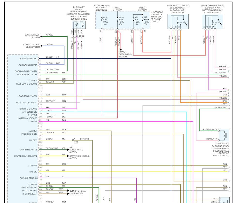 With the system on test the 5-volt references to each sensor and look for the one that is low and replace that sensor. This guide can help, and I have included the engine PCM wiring diagrams so you can see how the system works and which sensor wires to test.
