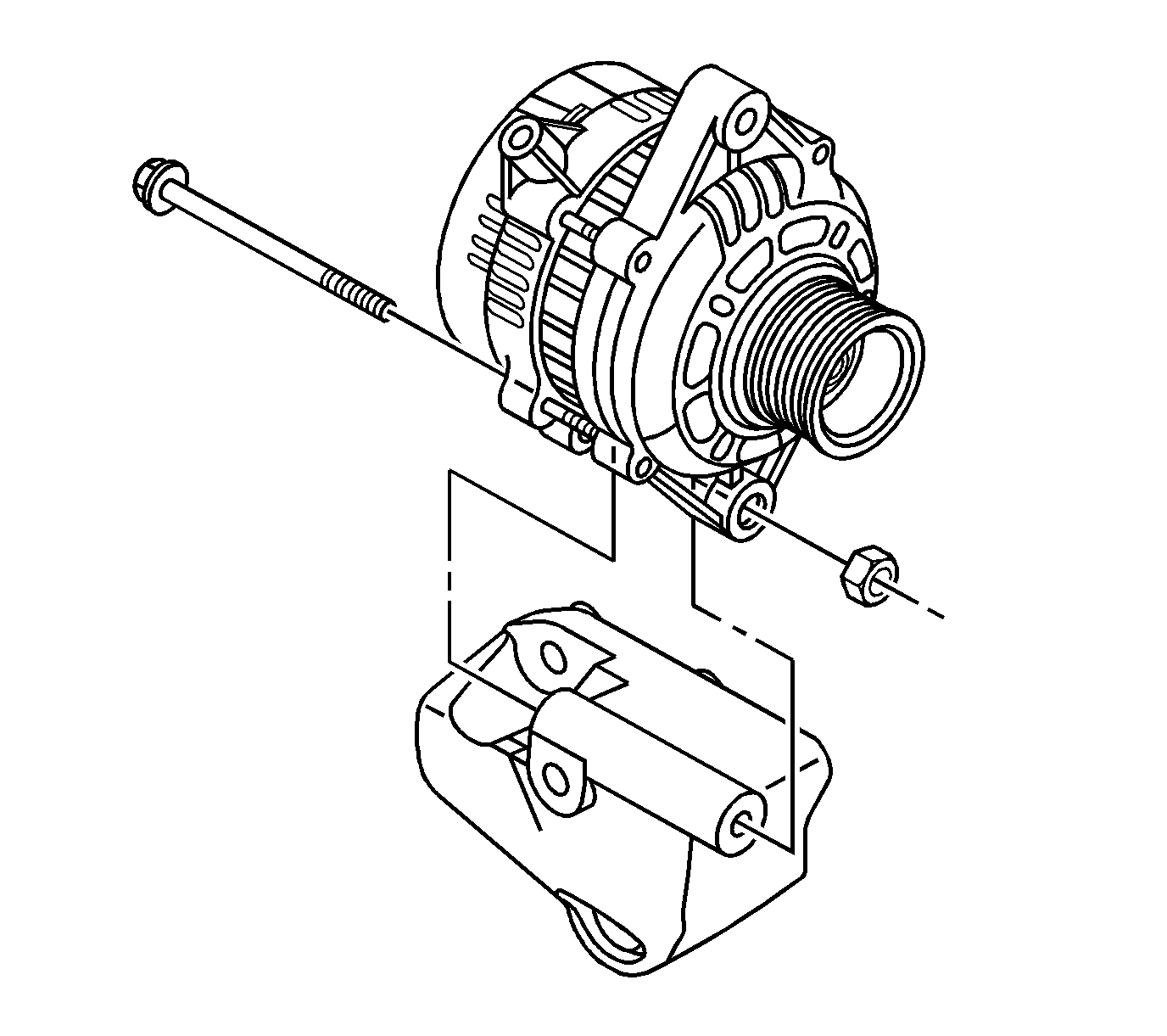 2. Install the nut and the washers on the generator lower bracket-to-generator bolts.