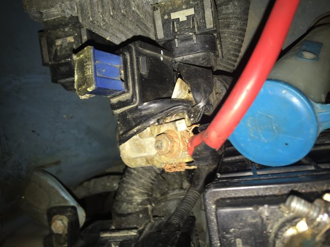 6. Install the generator lead to the battery and fasten the lead with the nut.