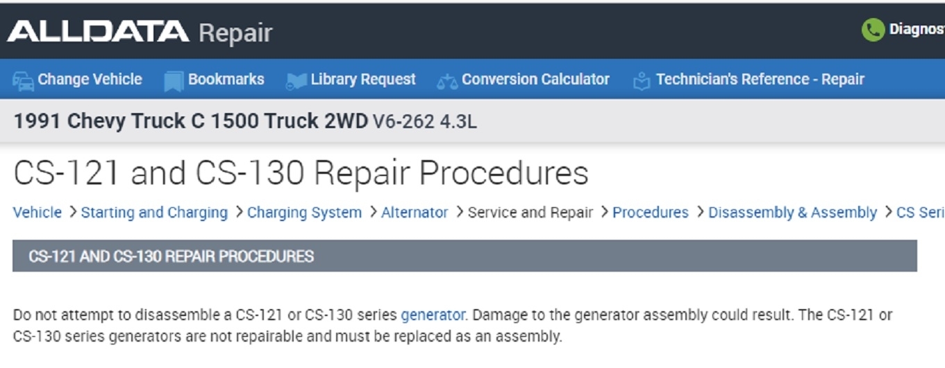 GM has had a history of designing large assemblies that they don't want repaired in the field. They want you to buy the whole assembly. This goes back to their very nice HEI distributors and their second generation generators. It was always the aftermarket suppliers that developed the tools and methods of repairing the assemblies rather than replacing everything, then they came up with the replacement parts. This warning message was from GM. Today it is possible to find rebuild kits at farm and home stores and some auto parts and hardware stores. The kit at my local store costs over $75.00 and includes the front bearing, (another common failure), the rear bearing, the diode block and a new voltage regulator and brush assembly. There is no way in the field to test the voltage regulator, so you would want to replace it rather than risk having to do the job all over again. The thin, flimsy metal tabs on the diode block break off when trying to unsolder the wires through them, through the holes in the housing. There's no practical way to repair that, so it gets replaced too. By the time you're done, the unit still might not work, so all that time and money is wasted. We never repair generators and starters for our customers because they will only remember and blame us if the repair goes sour in a few days, plus, it doesn't save them any money. People like me always DO repair these assemblies for ourselves, but this is one item that doesn't pay to try. You have to bite the bullet and just spring for a rebuilt generator. If you want to try to do this yourself, I'll keep my fingers crossed and jump joyously with you if you're successful, but the odds are against that. Even my local starter / generator rebuilder won't repair these. He will sell you the parts, but it won't save you anything over the kits at the farm and home stores.