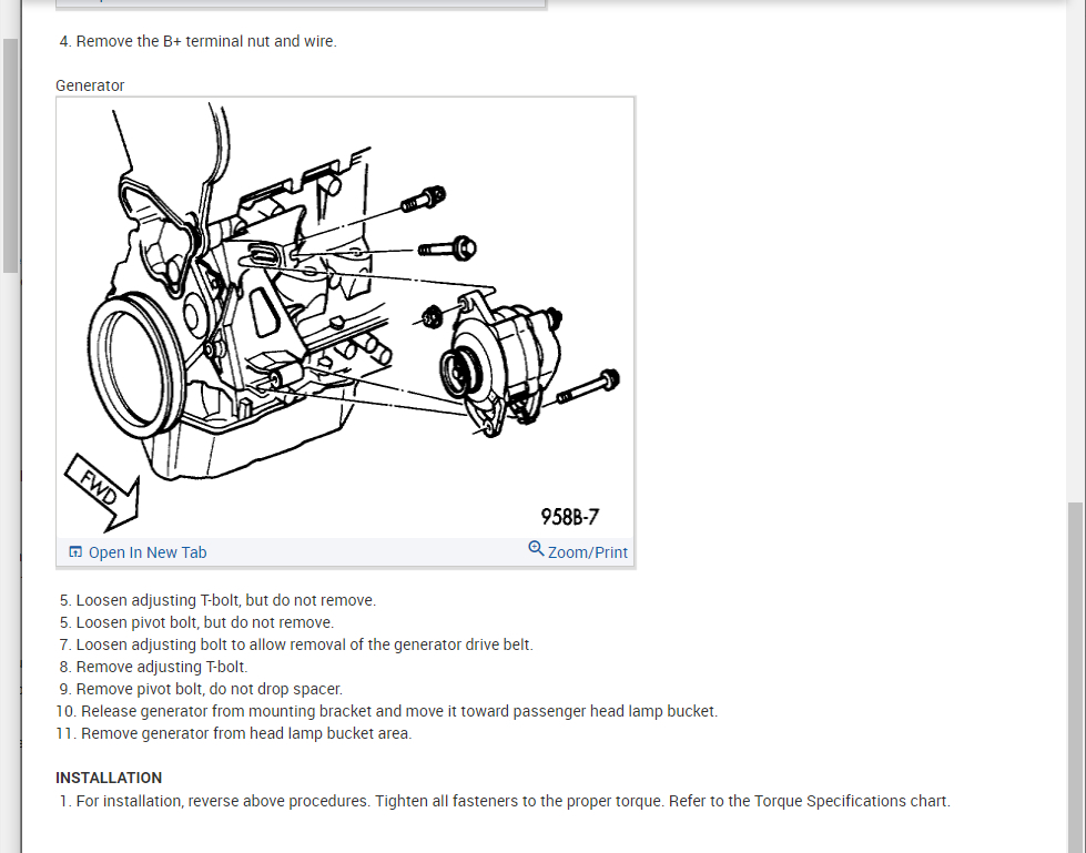 Below you will find the process on how to replace the alternator and part number that you will need.