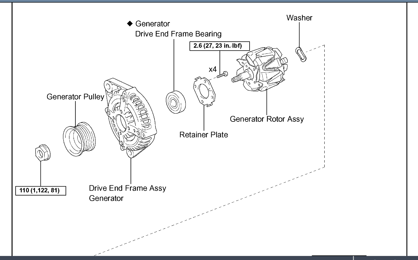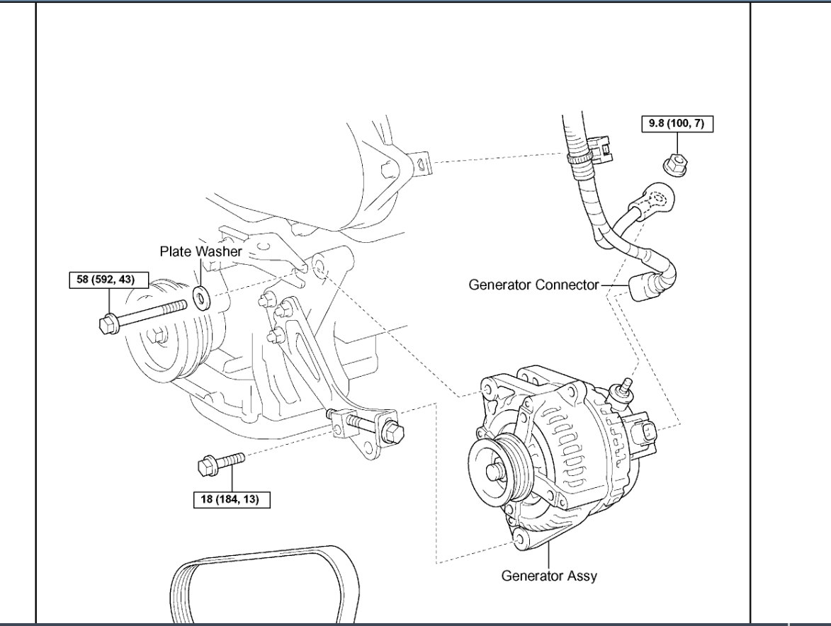 Okay, back to your question, I am not sure that your alternator has a backing nut on a bolt. The only nut should go to hold the ring connector from the wire to the battery onto the alternator itself. But if you want to put a nut on a bolt, I would suggest taking the bolt and running down to the local hardware store. They usually have a great fastener section and you should be able to match a nut to the bolt in question pretty easily. I have included a couple of exploded diagrams of the alternator and alternator bracket with the correct torque values for you in the diagrams down below. Please look these over and get back to us with what you find out, please.