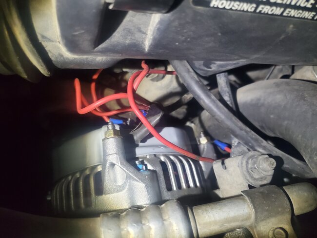 The problem with this circuit modification is all those variables have been eliminated because nothing is built into the external regulator. The pulsing head lights are likely the result of "hunting" system voltage on the regulator's blue wire. Something else is causing a pulsing current draw, and the regulator is either not reacting to it or it's overreacting to it. Normally this is solved by the voltage regulator monitoring system voltage at some other place. The best example is when a vehicle has a digital dash. Those will flicker in brightness with the slightest variation in the voltage supply that runs them. For that reason, they use that voltage supply wire to monitor system voltage so it is held perfectly steady. That leaves the rest of the vehicle's circuitry susceptible to minor voltage fluctuations. Often that shows up as a barely perceptible flickering of the head lights. That is less irritating than a flickering instrument cluster.