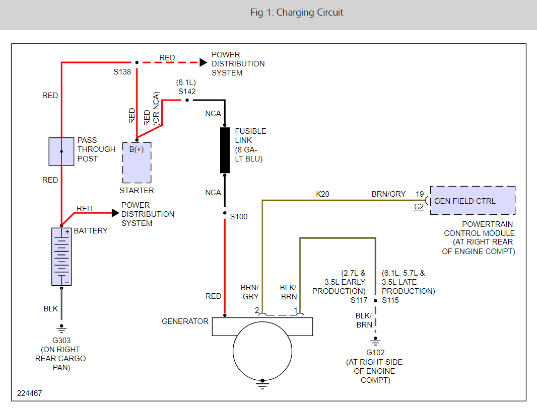 My alternator is not charging. I used a test light and have power to trunk fuse box, engine compartment fuse box and the starter but no charge at alternator. I am also getting three trouble codes, U0100 (lost communication with ECM/PCM A), U0103 (lost communication with gear shift control Module A) and U0121(Lost communication with Anti-Lock Brake System Control module). The charging issue and trouble codes started when I installed the starter and accidentally hooked up two wires wrong so when I hooked up the battery the positive cable got hot. I disconnected the battery quickly. Realized what I did and reconnected the starter wires correctly. So I figure I either fried my PCM or broke a fusible link to the alternator. So my question is, where is the alternator fusible link or do you think it is something else besides my that or the PCM? Thank you