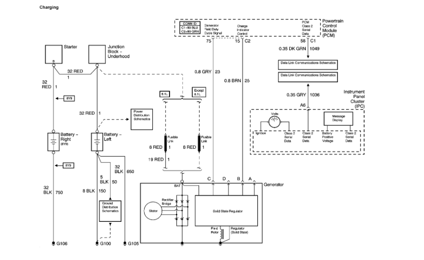 - The PCM detects that the generator output is less than 11 volts or greater than 16 volts. The IPC receives a class 2 message from the PCM requesting illumination.
