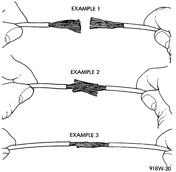 The fifth drawing shows the recommended splicing method. I prefer example 2, but that has the greater potential to leave sharp points sticking up that are easy to overlook. With larger diameter wires, some people will take a single strand a few inches long and wind it around the joint to hold it together while they solder it. The method I'm recommending is example three. It's faster and easier.