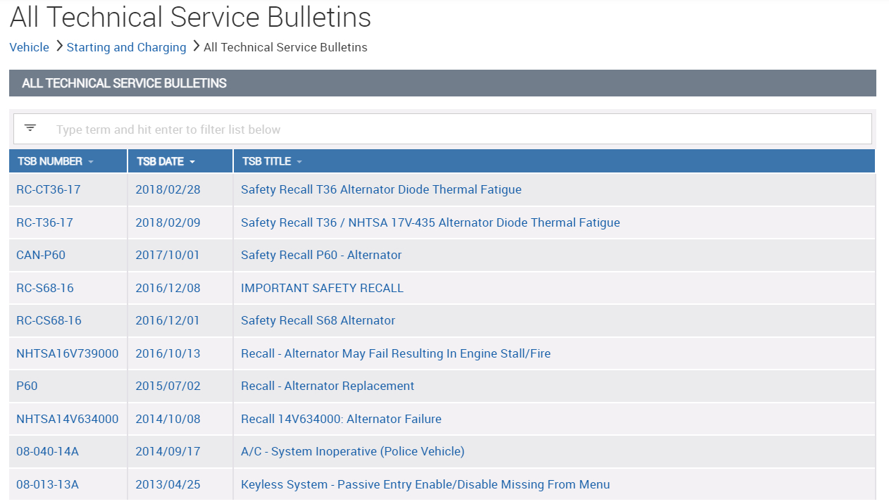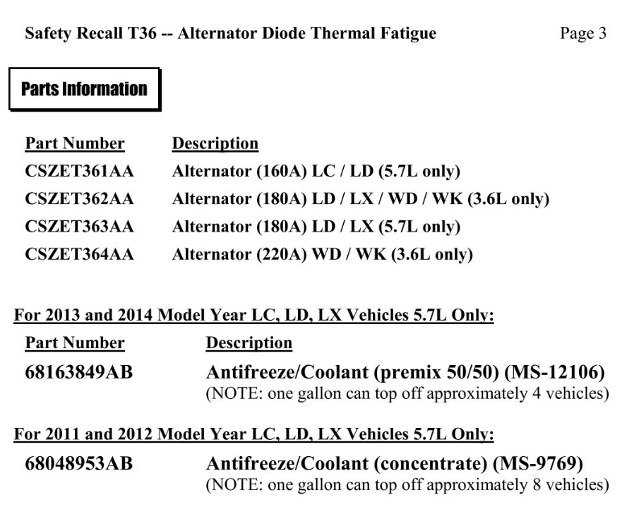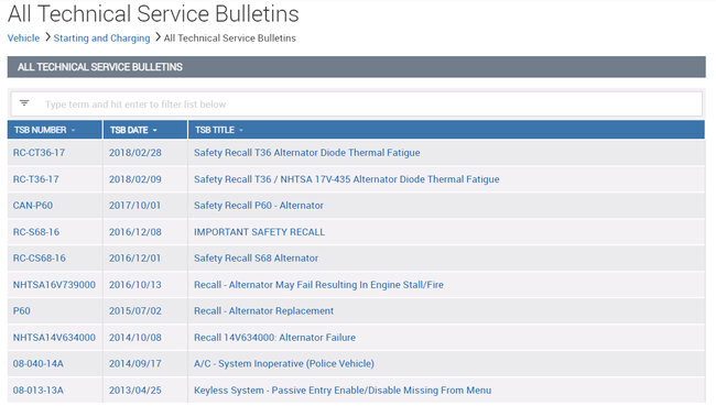 The 2nd diagram is all the Recalls and TSBs for the alternator.