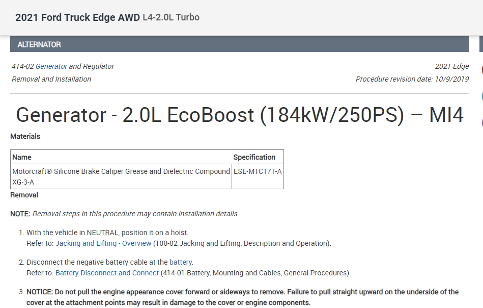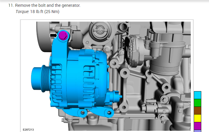 To replace the alternator, you will need to work from under the vehicle. Also, before you start this job, make sure the battery negative terminal is disconnected.