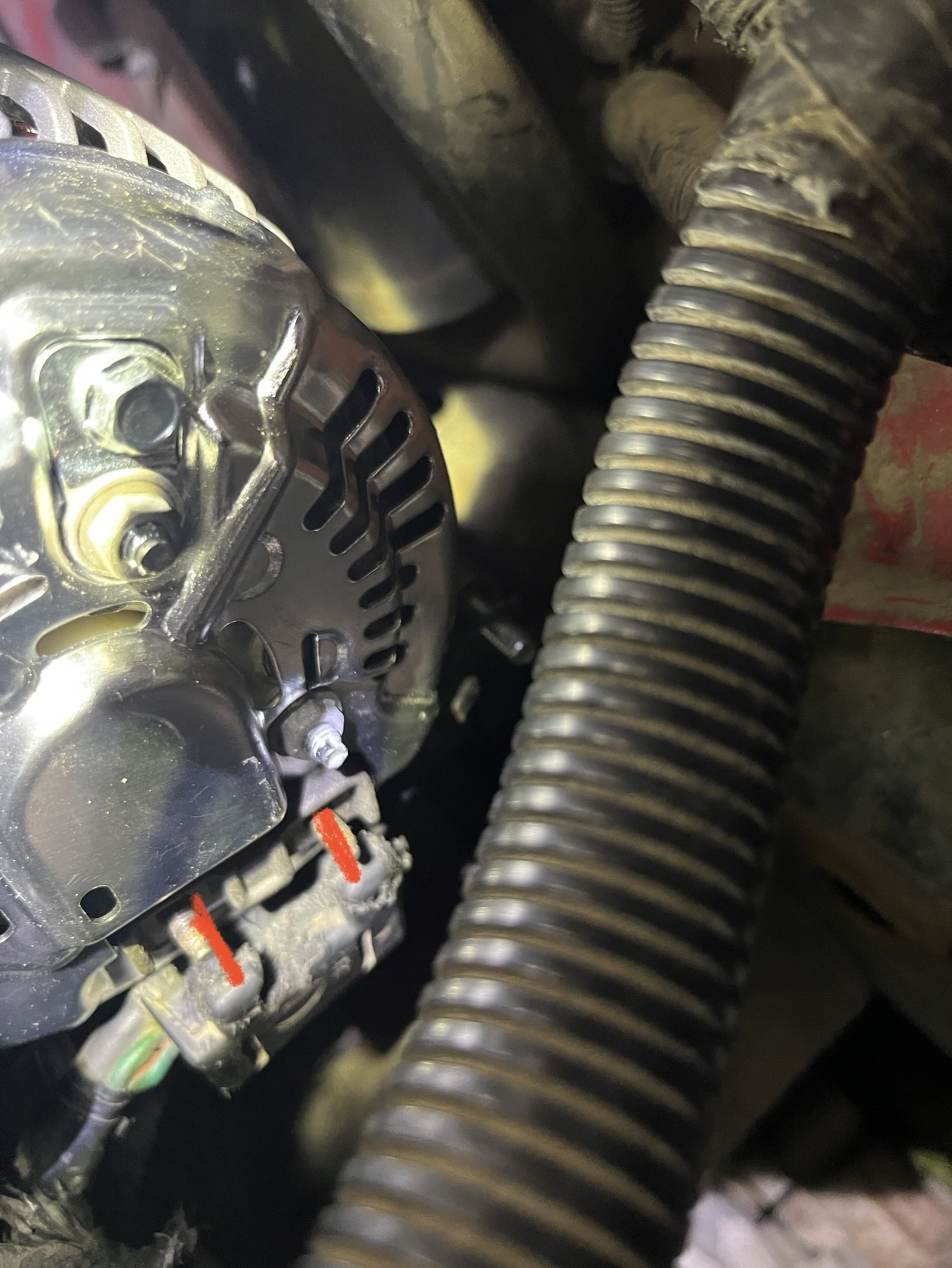 I've never snipped one of these off, but if possible, try to get the entire large cable that goes all the way back to the battery, the under-hood fuse box, or to a large bullet connector, only because splicing such a fat cable is very difficult. There's two smaller wires going into that black plastic block, then they pop out as the two metal tabs that get bolted to the two small studs on the alternator. Those are easy to splice, but don't use butt connectors as those don't seal out moisture. There are some now that you don't crimp. Just slide the wires in and heat them with a hot-air gun. That melts the solder and shrinks the sealing tube. I prefer the old method of sliding the strands together, soldering them, then sealing the joints with moisture-proof heat-shrink tubing. If you mix up those two smaller wires or they have different colors, the alternator will work just fine.