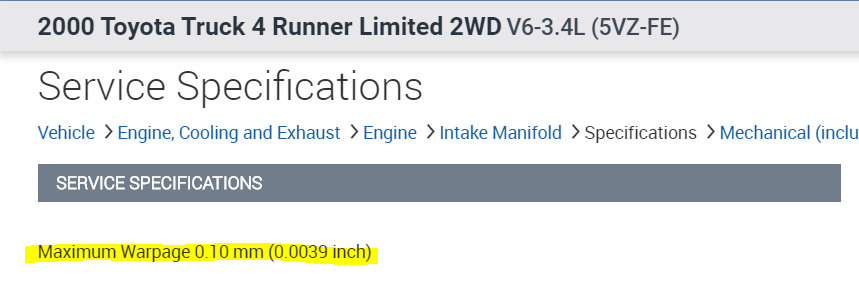 Year 2000 ("third generation") 4Runner, SR5 2WD, 183-hp, 3.4-liter, V-6 engine, regular gas, 19 MPG (combined), fuel-injection, non-interference, four speed automatic w/OD ECT transmission, California emissions, 314,000 miles.