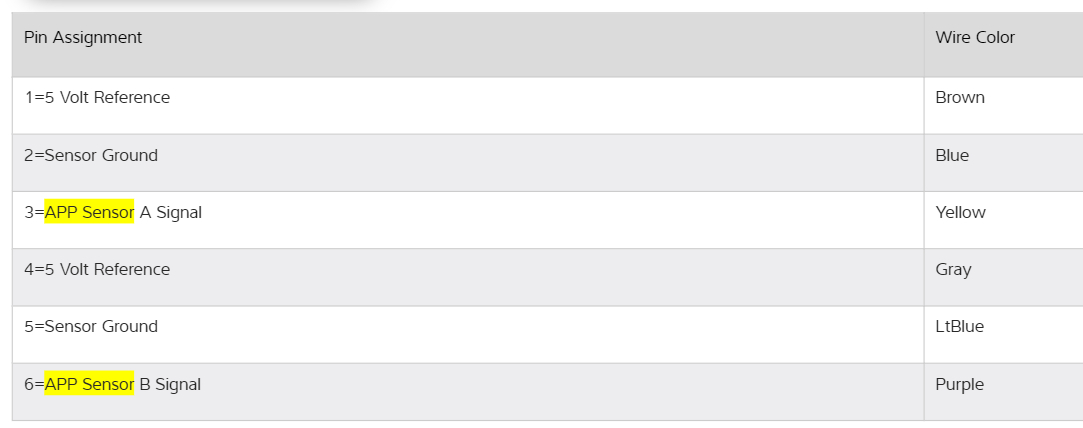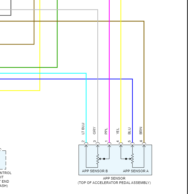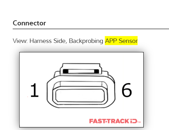 Do you still have the connector for the APP sensor for the pedal and did the wires get ripped out of the connector? I have a wiring diagram for the sensor, but I'm having trouble finding a diagram of the connector itself.