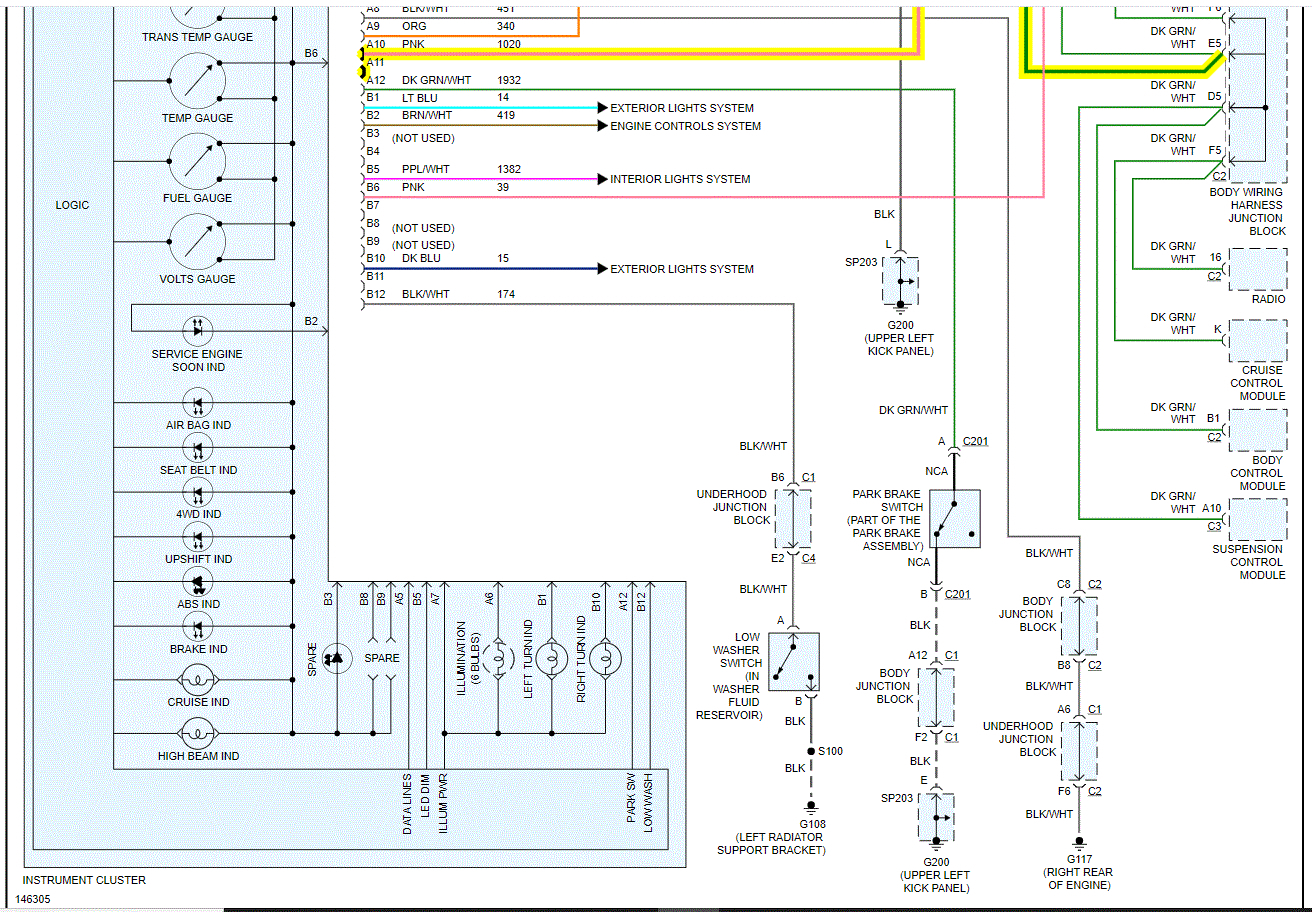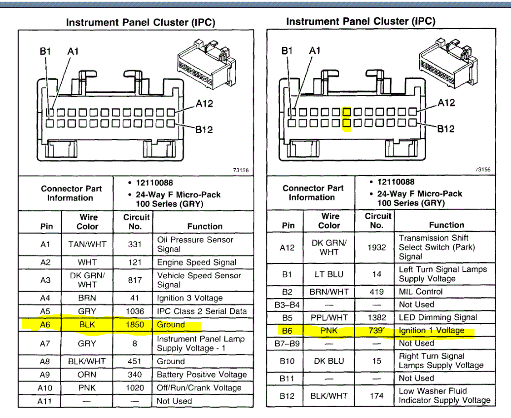 Did you check the connection at the cluster? See pic 3 below and check these connections as well.