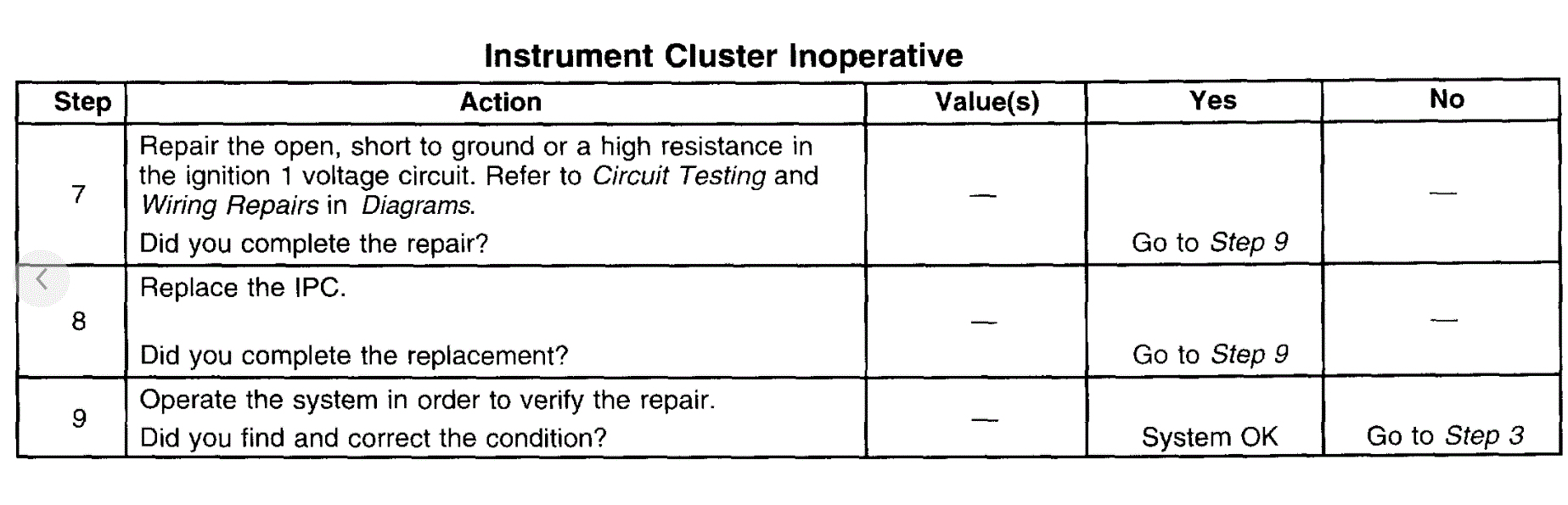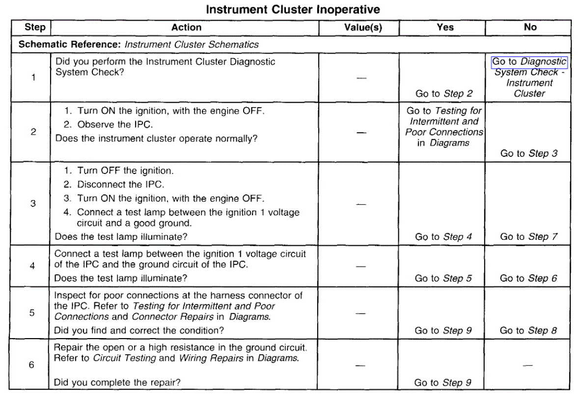 Take a look through the diagnostics below. They are for an inoperative IP, but it will help. Also, if you haven't already, you really should scan the can-bus. CAN stands for controller area network. Basically, the computers/modules are all tied together via a few wires. This type of scan will identify codes regardless of the module storing them. Here is a video showing how it's done: