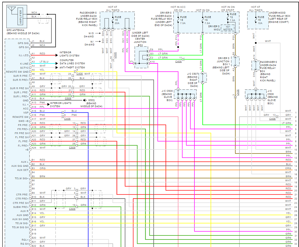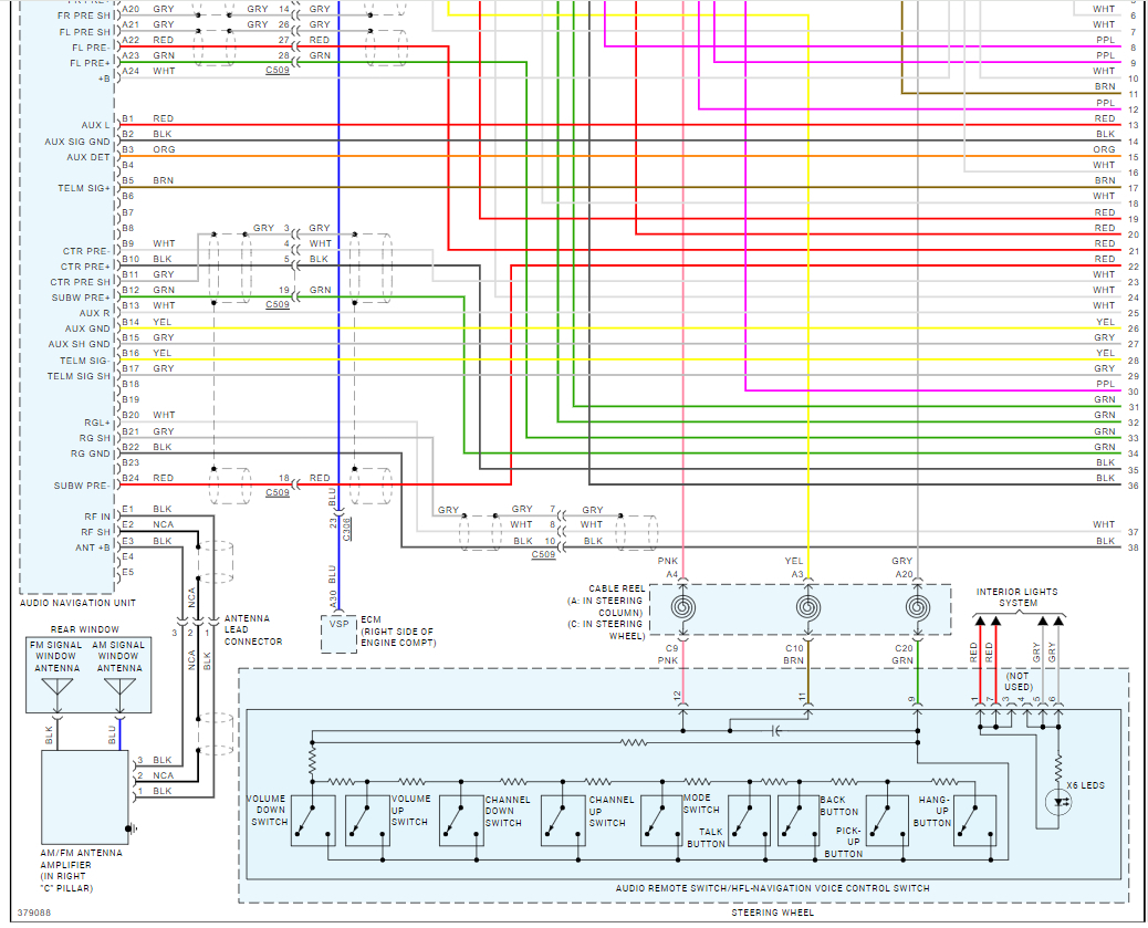 All audio systems are equipped with speed-sensitive volume compensation (SVC). The audio-navigation unit or the audio unit receives the vehicle speed pulse (VSP) from the ECM/PCM. The system processes the speed input and increases the navigation or the audio system volume level as the vehicle speed increases to compensate for the interior noise that occurs at higher speeds. When the vehicle slows down, the volume returns to its normal level. The SVC has four settings: SVC OFF, SVC LOW, SVC MID, and SVC HIGH that can be adjusted using the audio-navigation unit or the audio unit. The factory default setting is SVC MID.