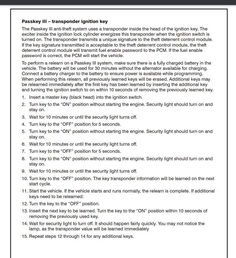 Truck is in anti-theft lock. I tried to rest doing the three on and off for 30 minutes methods. My problem is the light never went out to do step two over. Does this mean the anti-theft module is bad?