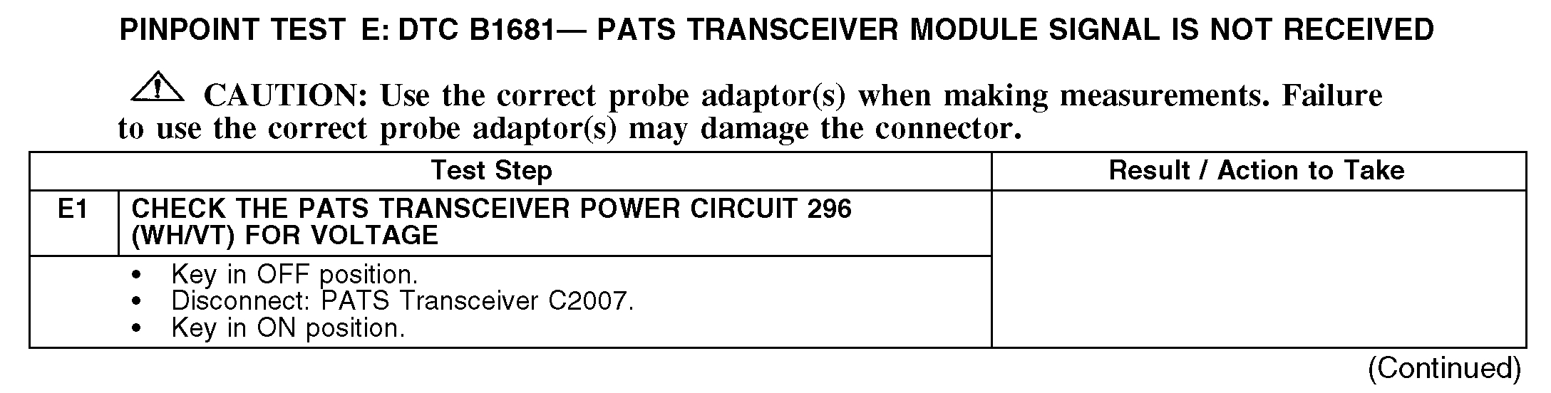 PINPOINT TEST E: DTC B1681 - PATS TRANSCEIVER MODULE SIGNAL IS NOT RECEIVED