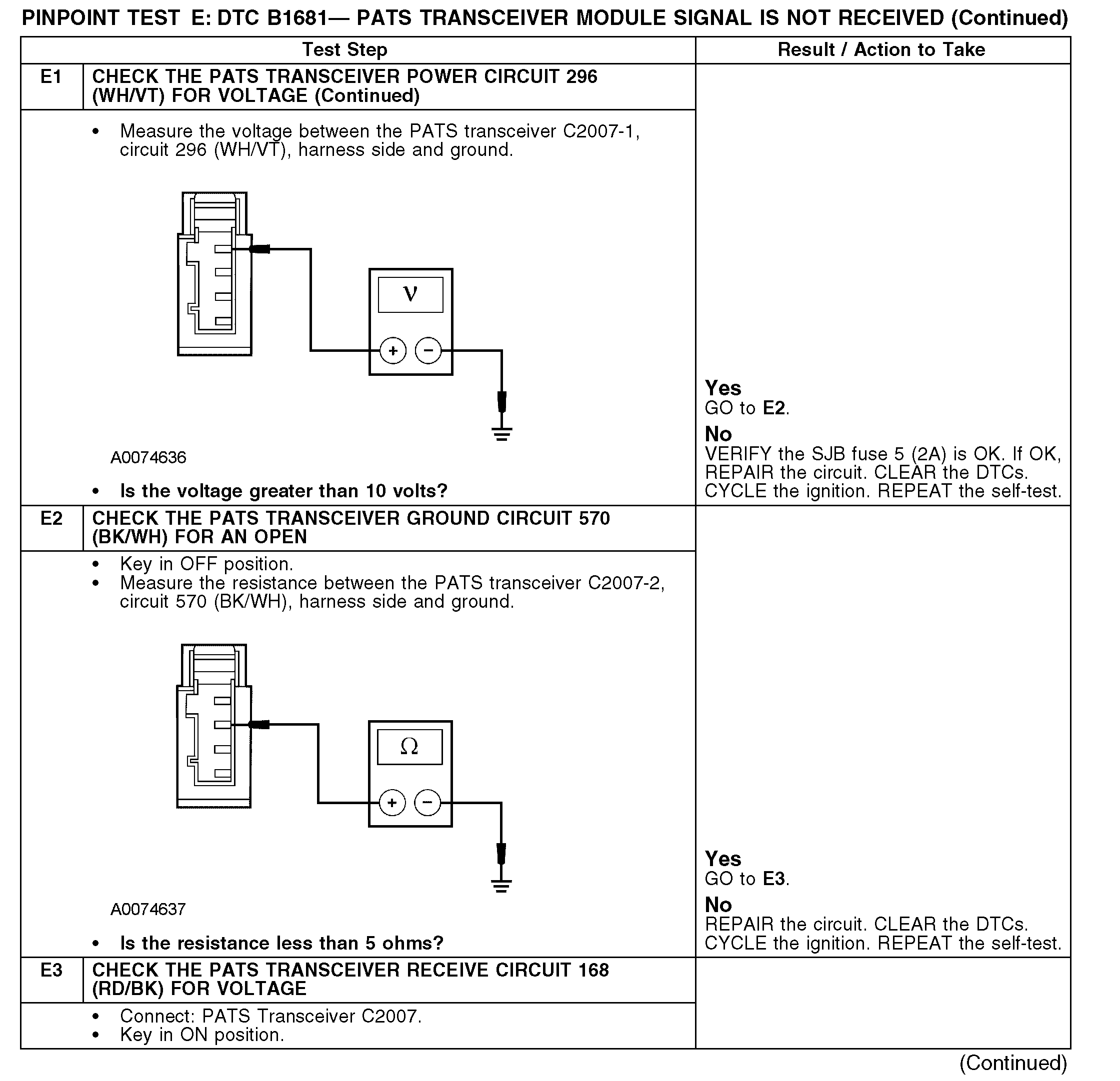 Test E: DTC B1681 - PATS Transceiver Module Signal Is Not Received