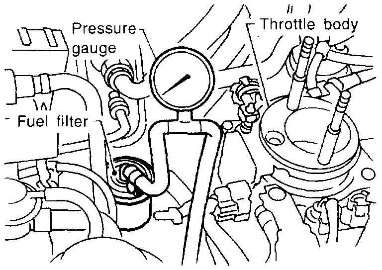 3. Install pressure gauge between fuel filter and fuel tube.