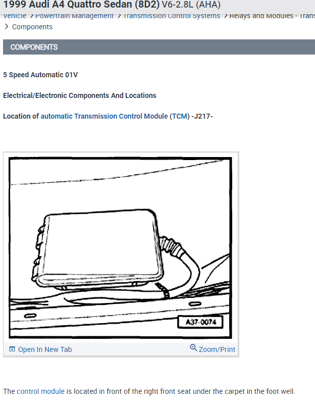 The control module is located in front of the right front seat under the carpet in the foot well.