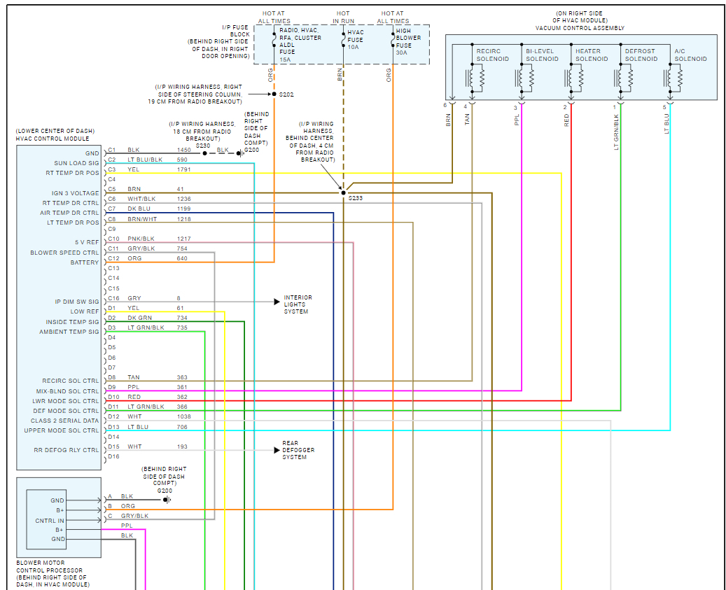 I have the car listed above LS and there is nothing on the climate control screen. Sometimes the red warm dual lights only light up (bottom right see attached picture). At night the light of some buttons lights up, but there is nothing on the display. One day, I started the car, the screen came on just for a sec and then nothing. When I tried to set the temperature, it turned off. So far, all the controller does is blow a little of hot air only (randomly). I turned the key to on. I measured voltage and on C5 and I got 3.15V. I checked the 10 fuse (was ok), but I changed anyways. I was trying to trace the brown wire from the cabin fuse box (Second picture). Measured voltage on third picture for C5 and I got the same reading 3.15V. I was trying to locate the S233 splice but did not succeed. I just have basic car wiring knowledge. I also unplugged the relays from the engine fuse box, I tested resistance and apparently, they are okay. Following this procedure: https://electrouniversity.com/how-to-test-a-relay-with-a-multimeter/