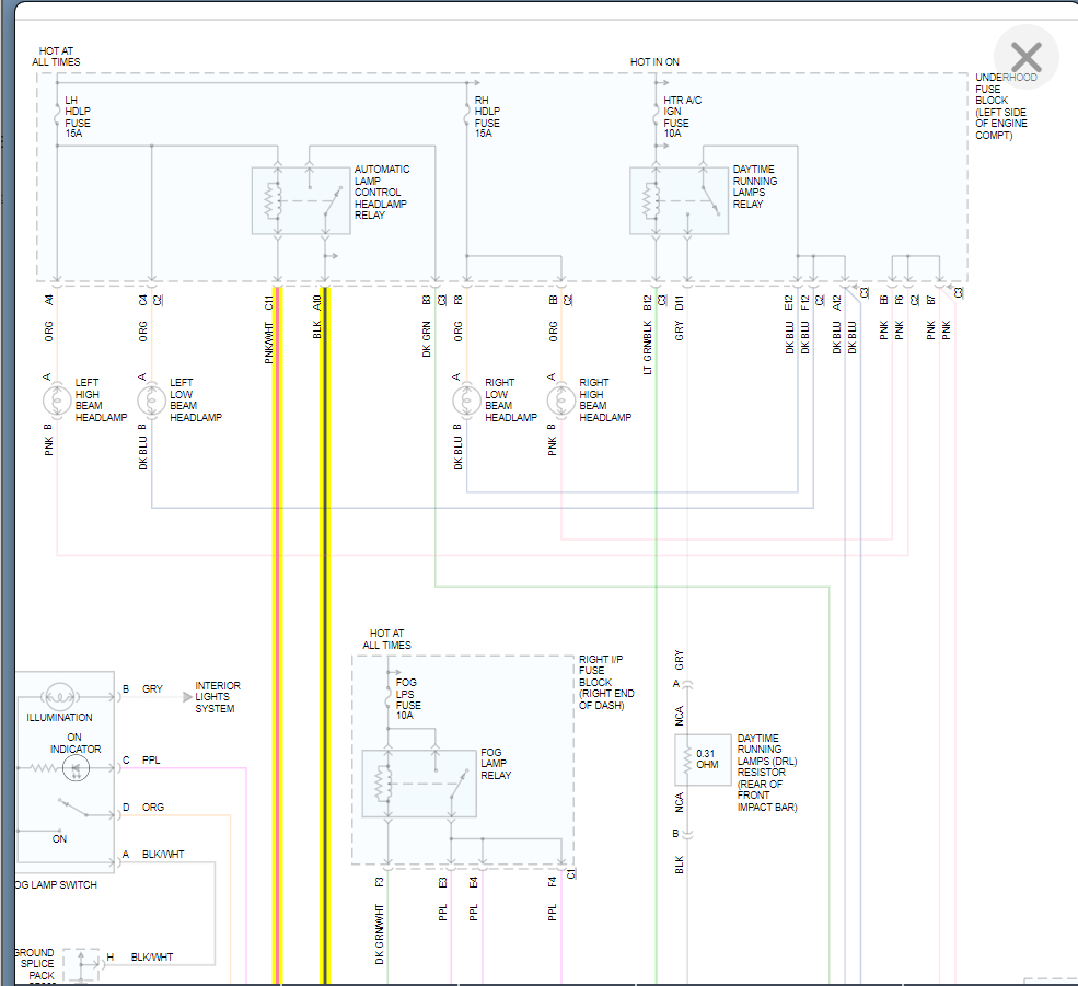 This auto headlight system has a separate relay that is controlled by the BCM. So, when you turn the switch to auto, the BCM sees that and grounds this relay and then that is what turns the lights on through the switch.
