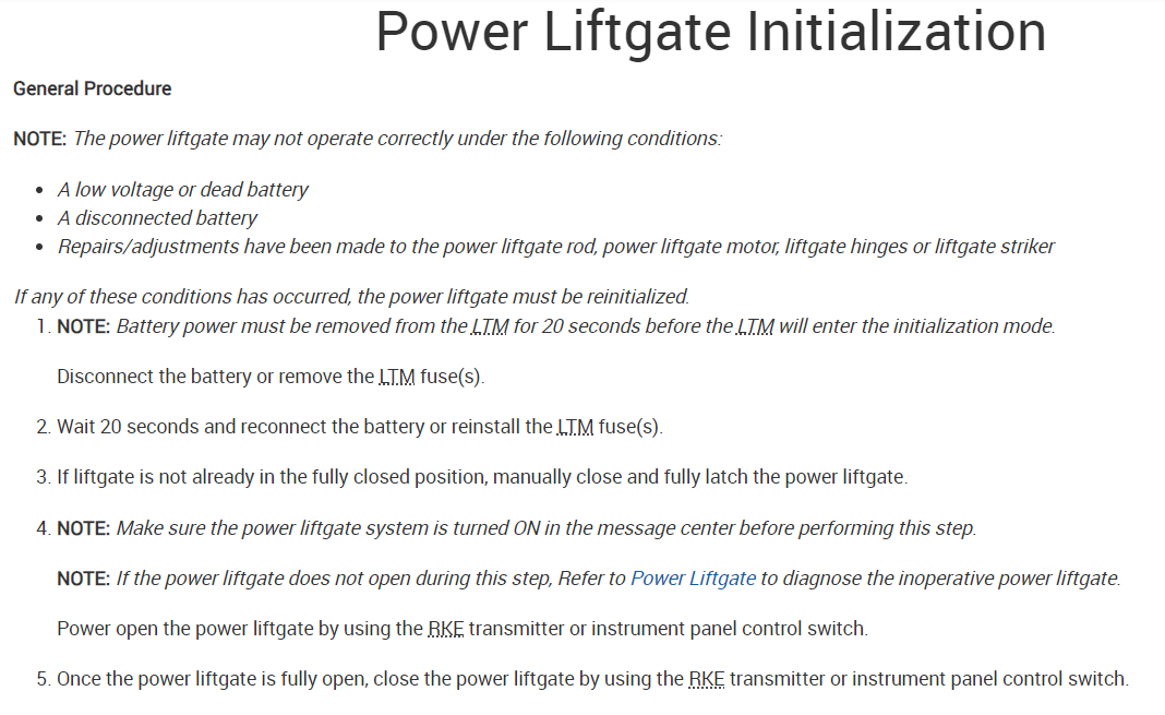 Power Liftgate Initialization