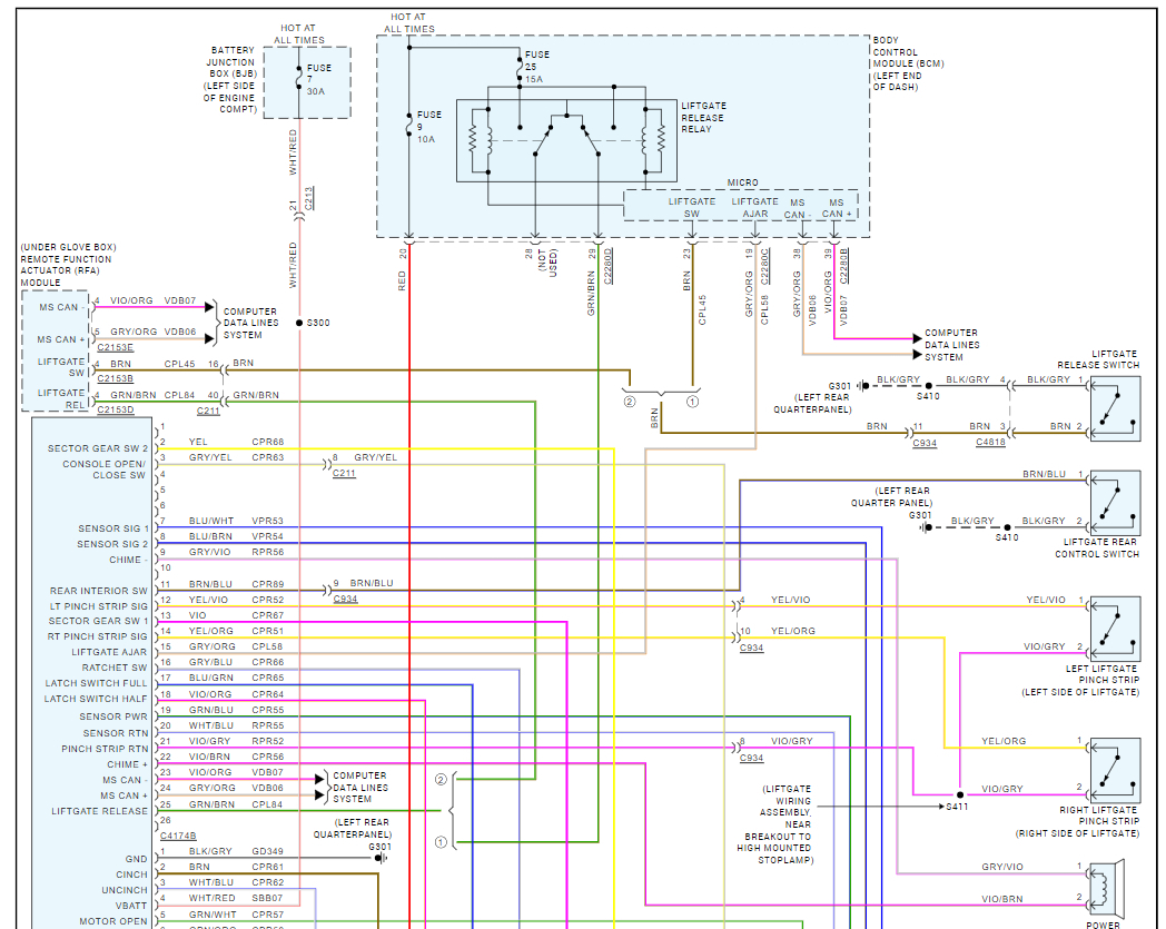 Here are the locations of the BCM and tailgate control module so you can check the electrical connectors. I also included the tailgate wiring diagrams so you can see how the system works.