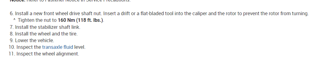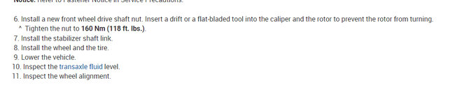 7. Secure the left drive axle to the left steering knuckle and strut.