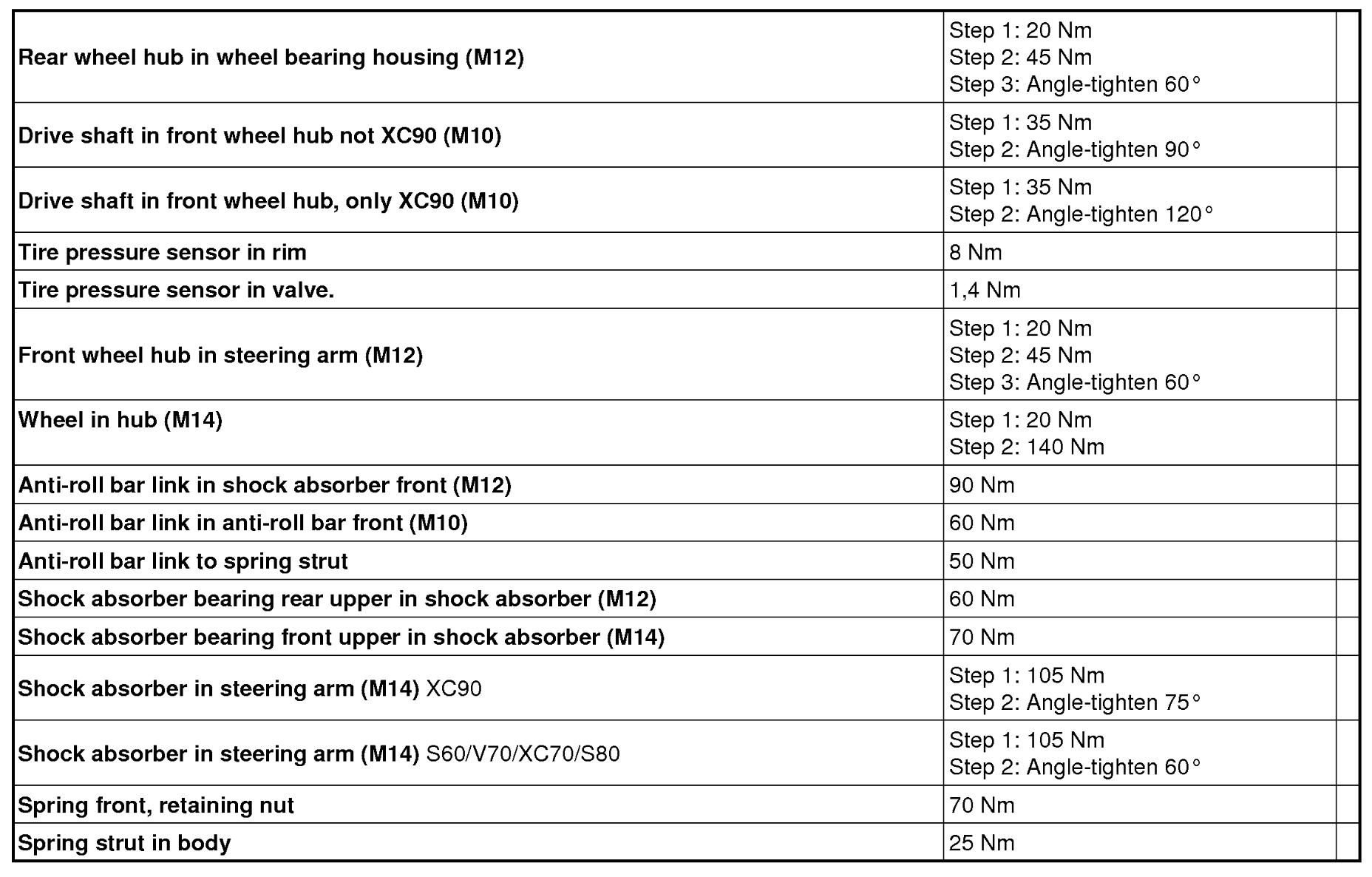 The spec I have here is for an m10 bolt for XC90 vehicles.