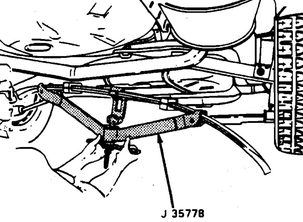 6. Assemble rear spring leaf spring compressor tool No. J-35778 or equivalent to transverse spring.
