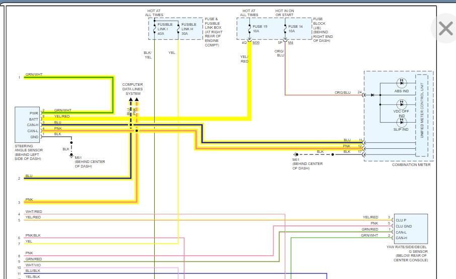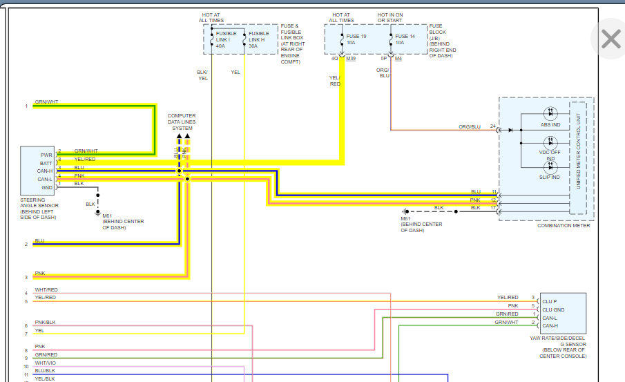 Now, here's a question: my vehicle listed above is not throwing a check engine light on the dashboard. The shop installed a new clockspring and after that, while driving, I felt a pulsating/vibrating effect on the pedals on certain condition like turning my steering at certain speeds and will throw a VDC/SLIP indicator on the dashboard. They inspected more and found out that when they turn the steering wheel there is no steering angle value that their scanner is reading (meaning it stays at zero degrees when they turn the steering in any direction). They said the Steering Angle Sensor is good and the clockspring is good, but the ACSD switch is bad. No check engine light; just pulsating/vibrating on pedals due to no data from steering angle sensor and throwing a VDC/SLIP light on dashboard and it comes down to the ACSD switch? I asked the mechanic who did the work what the ACSD switch do and said it should provide data to the ECM on the Steering Angle and once the ACSD switch is fixed that pulsating effect will go away. I just found out today before this video that ACSD is about the cruise control switch in the steering wheel, but he didn't mention anything about cruise control. How is the ACSD cruise control switch connected to the Steering Angle Sensor? And why would it not send data to the ECM if the ACSD is the one that's bad? Or my gut feeling is right that the shop is pulling my leg? The good thing though is the clockspring turned off the blinking airbag light which is why it came to this clockspring replacement and the pulsating issue.