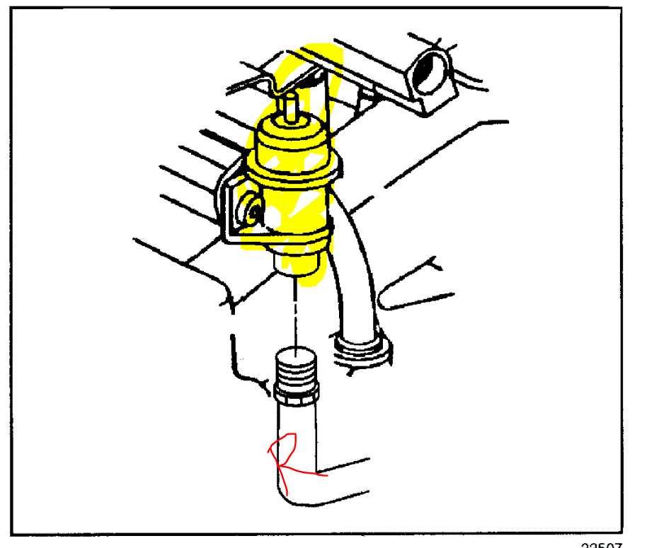 Also, the return line will be mounted on the regulator. The opposite side of the regulator is mounted to the fuel rail. Inspect for leaks at the connections and at the regulator. (Last pic/regulator highlighted/letter R indicating return).
