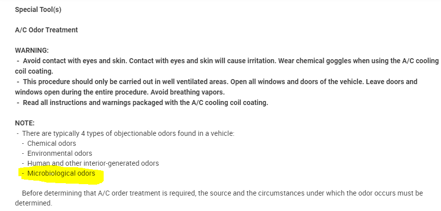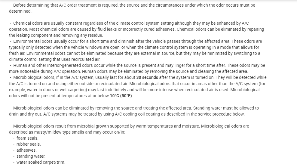 My dad took the car to the dealership a couple of times over this issue. From the one invoice I saw, they would clean the interior and do some kind of deodorizing step and return the car. It never helped, and the car just sat in the garage.