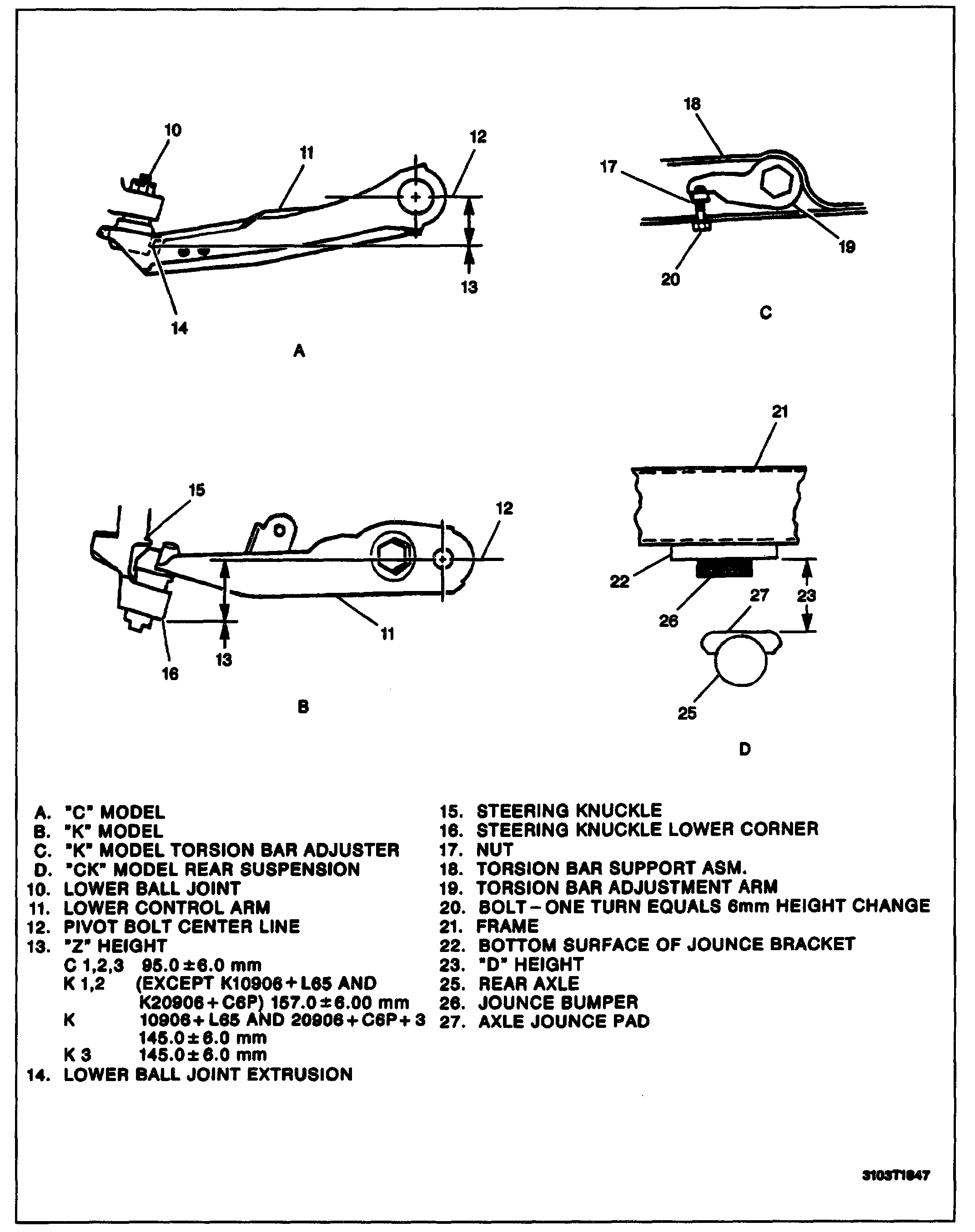 To determine Z height, you have to measure from the pivot bolt center line to the lower corner of the steering knuckle to obtain a measurement. The measurement should be right around 4.5".