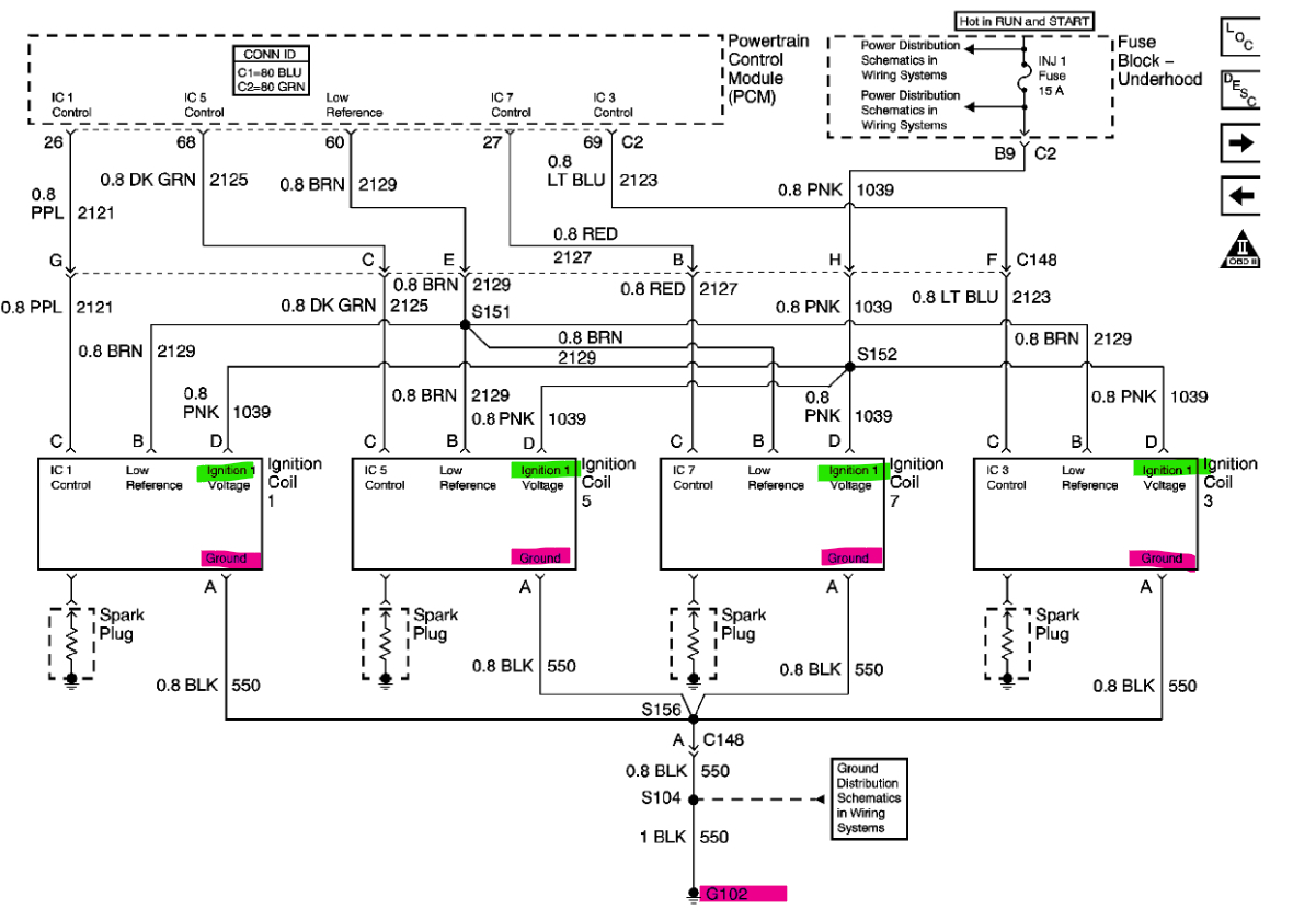 Unfortunately, the aftermarket diagrams have the wrong Ground location marked. Diagram 4 is the OEM, and it has G102 as the Ground for Bank 1. So, that is a correction.