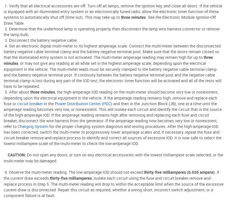 This vehicle should not have any more than 35 milliamp of parasitic draw.