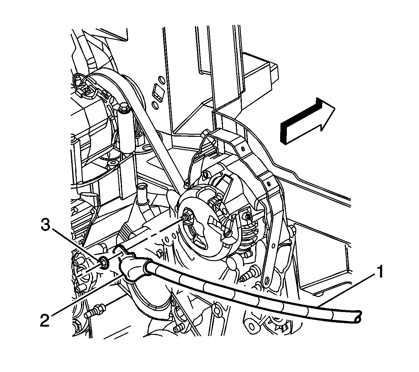1. Unbolt and reposition the coolant recovery reservoir. Refer to Coolant Recovery Reservoir Replacement.