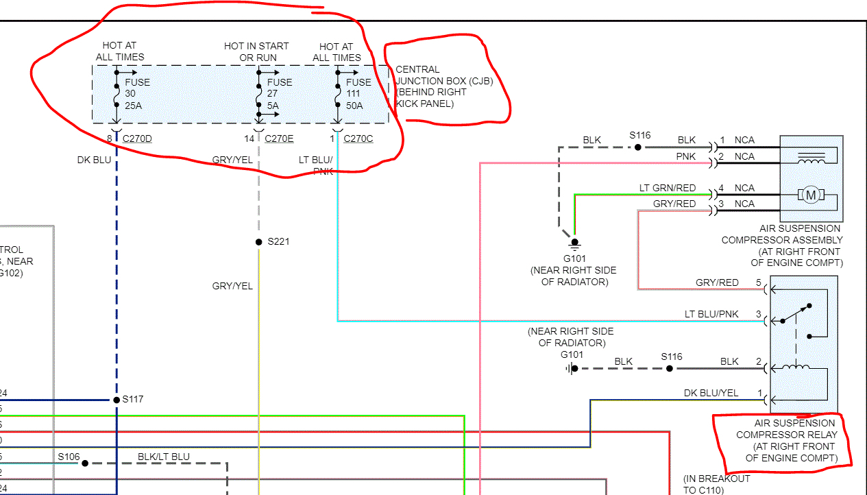 Do this 2nd --- If you haven't already, remove the fuses in the fuse box at the right side kick panel. That is the place you would rest your right foot if you were the passenger. See pic 2 for fuses I'm referring to. I have a feeling we found the issue, and it's related to the air ride. Note that the relay for the air ride is under the hood.