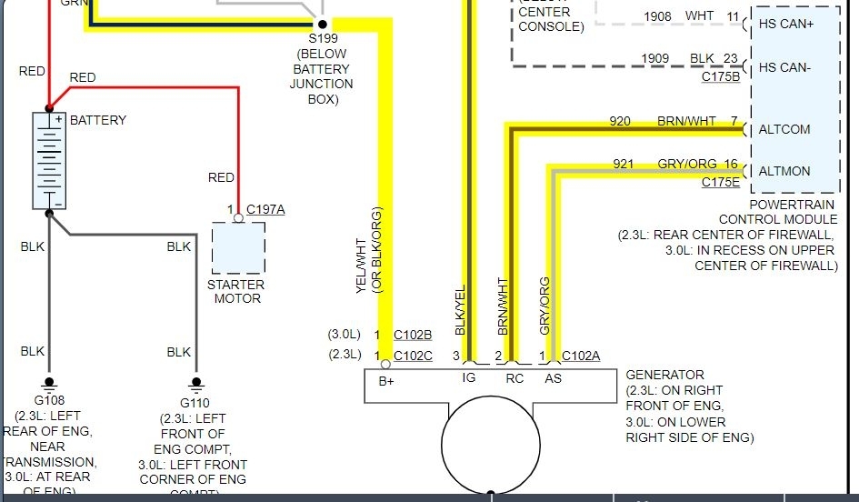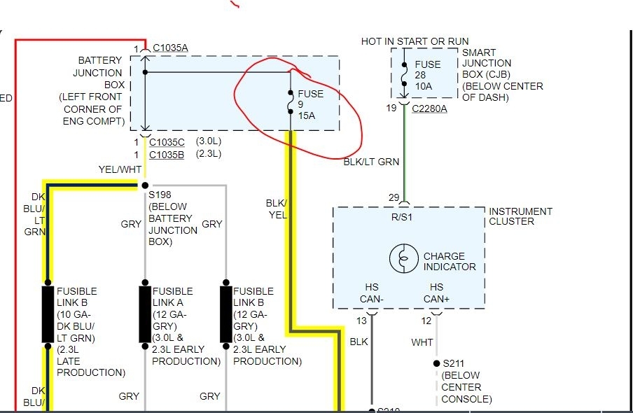 Also, verify the fuse I circled for power on both sides. The ECM controls turning on the alternator depending on the load of the car.