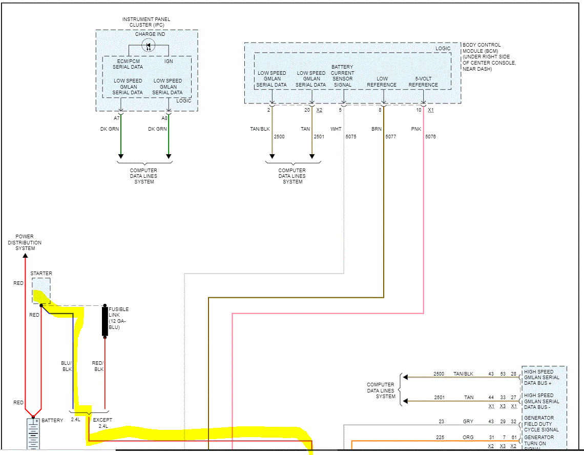 Let me know what is found. All engines except the 2.4L have a fusible link between the starter and alternator, but you should be hard wires according to the schematics.