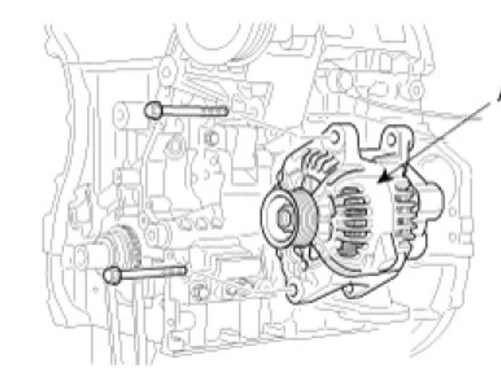 2. Disconnect the alternator connector, and remove the cable from alternator "B" terminal.