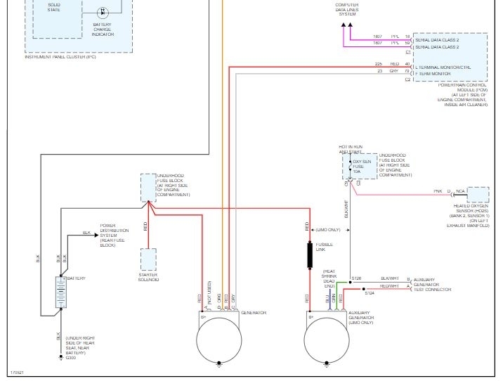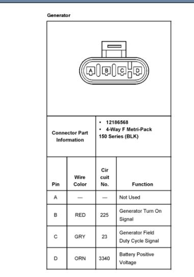 The battery positive voltage output circuit of this generator is connected to the battery positive voltage terminal on the underhood bussed electrical center.