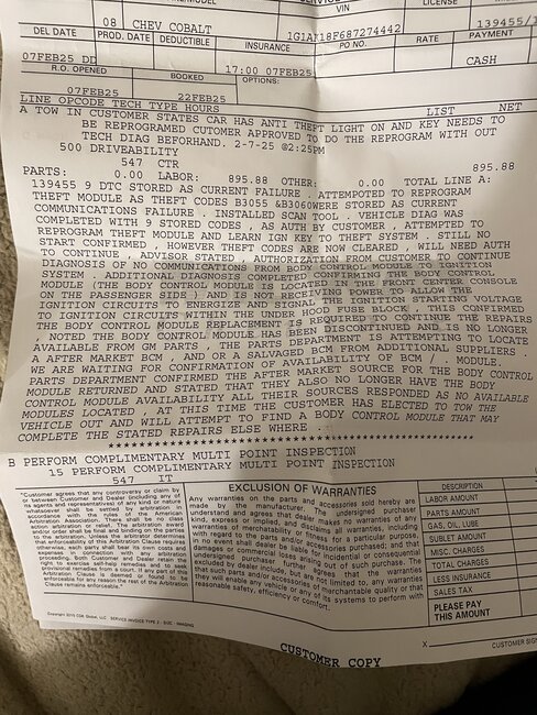 When I was going to replace my shifter cables and had removed the negative terminal, then the fuse box and noticed the cables were not the right parts. I cleaned the grounds. The one underneath the coolant tank and the tiny one on the frame and another tiny one behind the fuse box. With Contact Cleaner. I sprayed the two connectors that plug into the ECM and wiring harnesses below the oil filter. After letting them dry and the time to put everything back together. I went to move the car and the car wouldn’t start. I saw the Anti-Theft light on and then went away but tried the relearning process and other methods online even hard reset. Nothing. I had no other way to get it to start. Battery was not low and even charged it up to make sure before having it towed to the dealer. I thought somehow the vehicle forgot the key and maybe they could reprogram it to the car. That didn’t work but they wipe the Anti-Theft codes. They told me BCM wasn’t communicating with the Ignition System. Figured there’s a short or the other remaining grounds that I haven’t cut and replaced a new eye let. Since these Cobalt's have electrical/ground issues. The two that I still need to do G105 near the oil filter and the other between the engine and firewall exhaust manifold area. Before this anti-theft light. My speedometer, RPM, gas gauge, horn, third brake light, trunk release button, coolant temp reading on instrument panel are constantly reading different temps, power steering message (even though I have power steering, and airbag safety check message and doesn’t keep track of mileage now. After cleaning the ground underneath coolant. My horn, third brake light and RPM work. Occasionally if I drive on a bumpy road the RPMs with lose connection and I see the needle drop while driving. But when I stop and get back to turn on the car the RPMs will work but now I have to tow the car back to my place since the dealership couldn’t fix nor did they look into what I told them. They just went by the diagnostic.