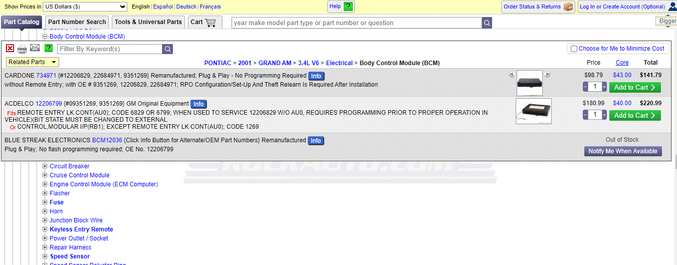 If you are thinking of getting a used BCM, you will need the exact number on the module itself.