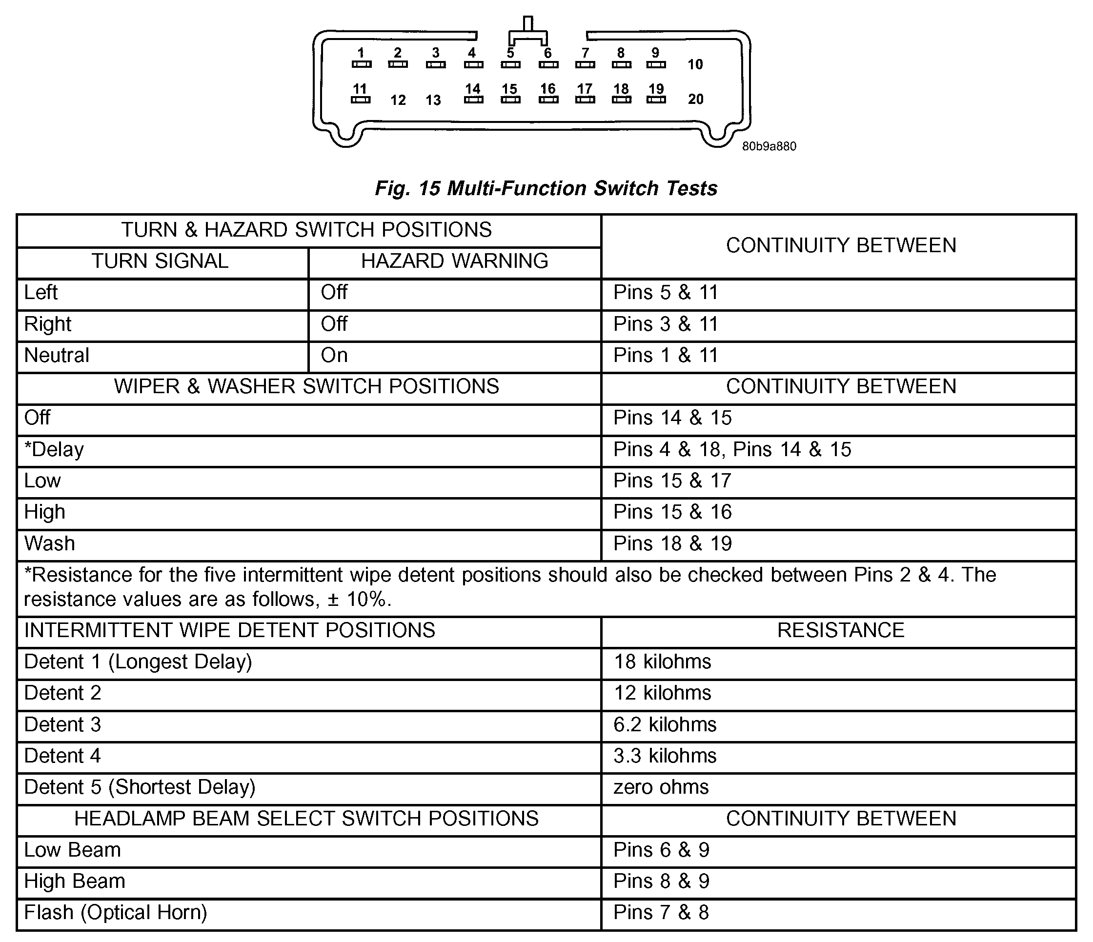 Vehicle Sensors and Switches Sensors and Switches - Lighting and Horns Combination Switch Testing and Inspection Component Tests and General Diagnostics Multi-Function Switch Test