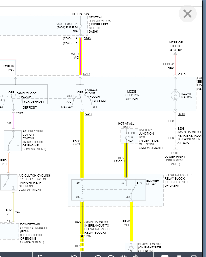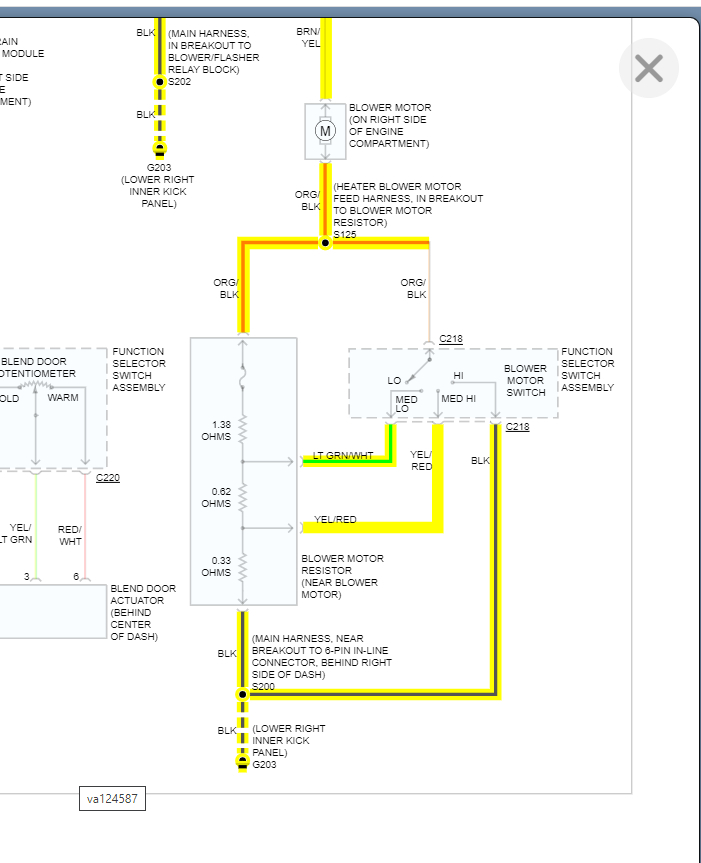 Basically, we need to check power at the blower motor and then go through the system until we find power. Keep in mind this is ground side controlled so you are looking for 12 volts at the motor and then a good ground.